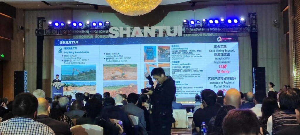 The conference promoted Shandong Shantui’s full range of construction machinery products, especially rollers, graders, pavers, LH series static pressure loaders, L series hydraulic loaders, forestry logging excavators, as well as micro excavators, mining excavators, new energy excavators, African gold mining excavator series and other models under various working conditions.